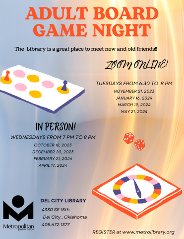 The library is a great place to meet friends, play old and new board games while social distancing. Remember, games promote creativity and foster positive skills like sportsmanship and logical reasoning! Join us for a virtual game night held over Zoom. (Once registered, you will receive Zoom link and information for the game of the month.)