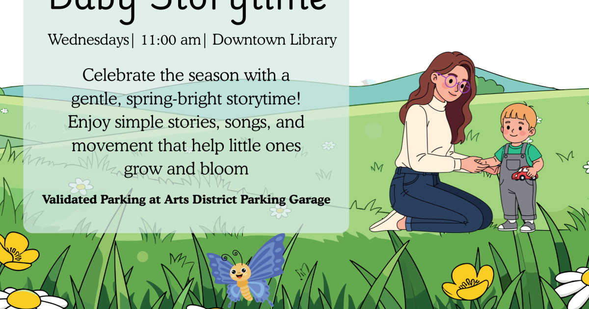 Join us every Wednesday at 11:00 AM at the Downtown Library for Baby Storytime! Snuggle in with your little one and enjoy a relaxed, joyful time filled with stories, songs, lap bounces, gentle movement, and more. It’s a wonderful opportunity to slow down, share special moments, and connect with other families in your community.