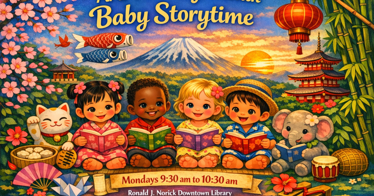 Join us every Monday at 9:30 AM at the Downtown Library for Baby Storytime: AAPI Heritage Month Edition! Snuggle in with your little one and enjoy a joyful, relaxed storytime featuring AAPI stories, songs, rhymes, and culturally inspired sensory play. This program offers a playful, welcoming space to slow down, share special moments, and connect with families in your community.