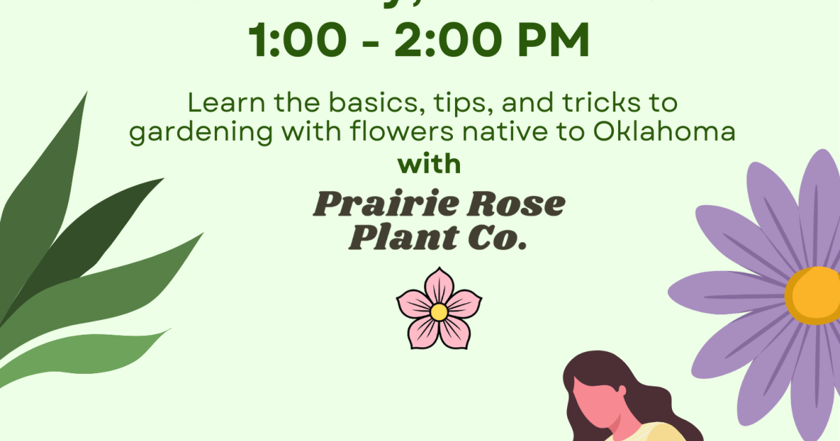 Begin your gardening this spring with this specialist led program! Prairie Rose Plant Co. will offer basics, tips, and tricks to gardening with flowers native to Oklahoma. Afterwards, chat with the specialists and grab a free native flower seed packet to get you started!
