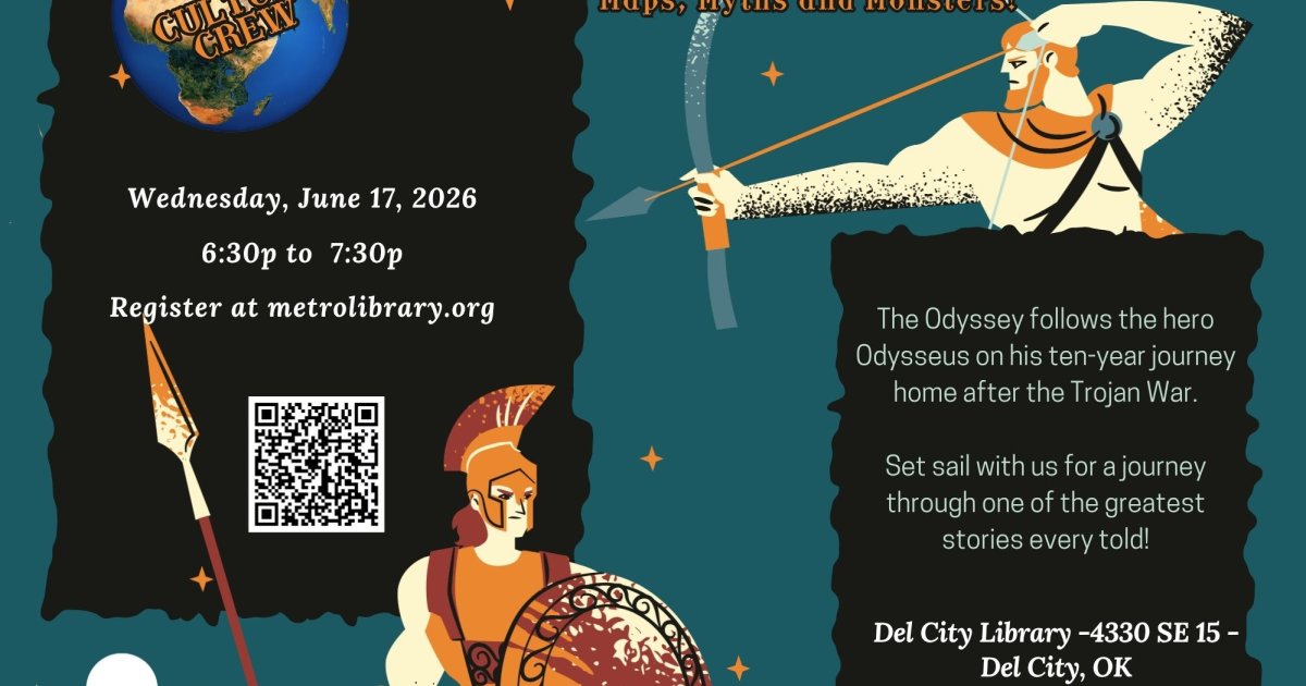 Set sail with us for a journey through one of the greatest stories ever told. In this interactive library program, our presenter will trace Odysseus’ legendary voyage across the ancient world using a detailed map and timeline of his travels. From the shores of Troy to encounters with monsters, gods, and mysterious islands, discover how his long road home unfolds step by step.