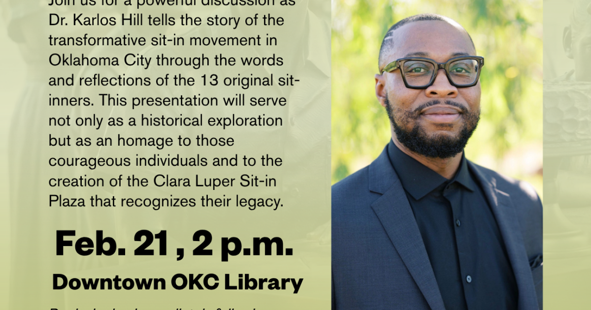 Join us for a powerful discussion as Dr. Karlos Hill tells the story of the transformative sit-in movement in Oklahoma City through the words and reflections of the 13 original sit-inners. This presentation will serve not only as a historical exploration but as an homage to those courageous individuals and to the creation of the Clara Luper Sit-in Plaza that recognizes their legacy.