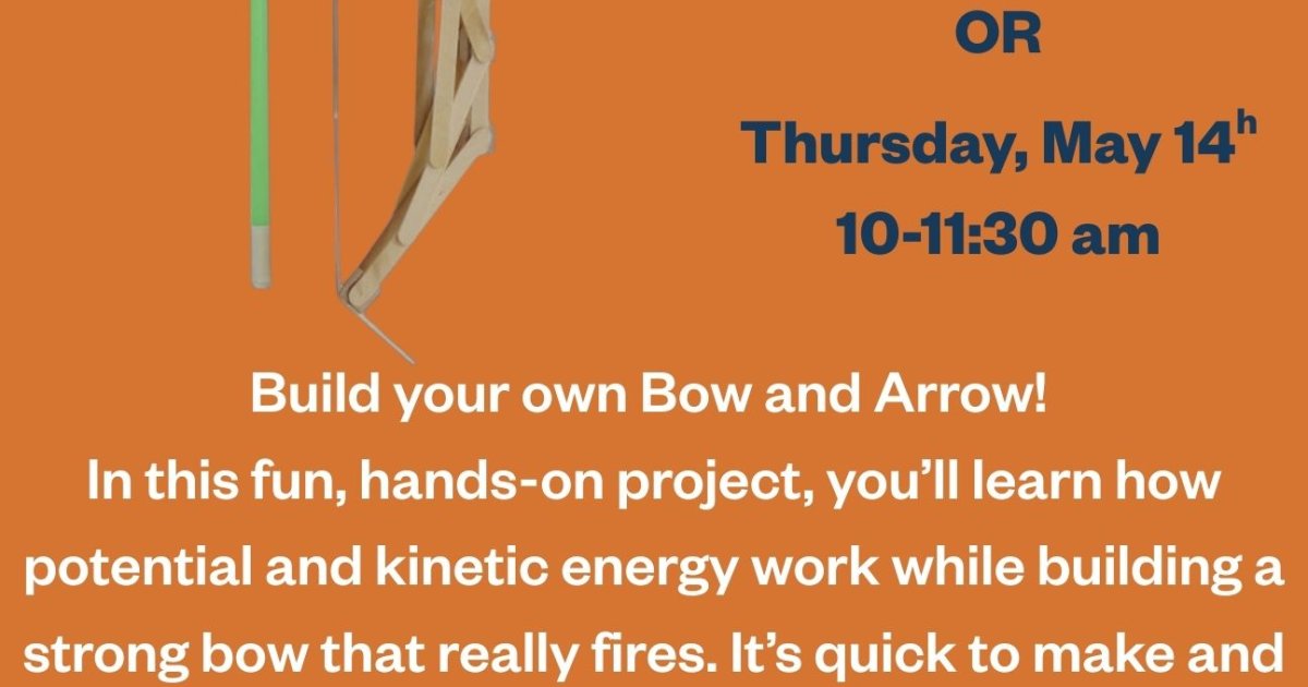 This month we’re building our very own Bow and Arrow! This project is quick to make and super fun to use once it’s finished. As you design and construct your bow, you’ll discover how potential energy (energy stored when you pull the bowstring back) turns into kinetic energy (the energy that launches the arrow forward).