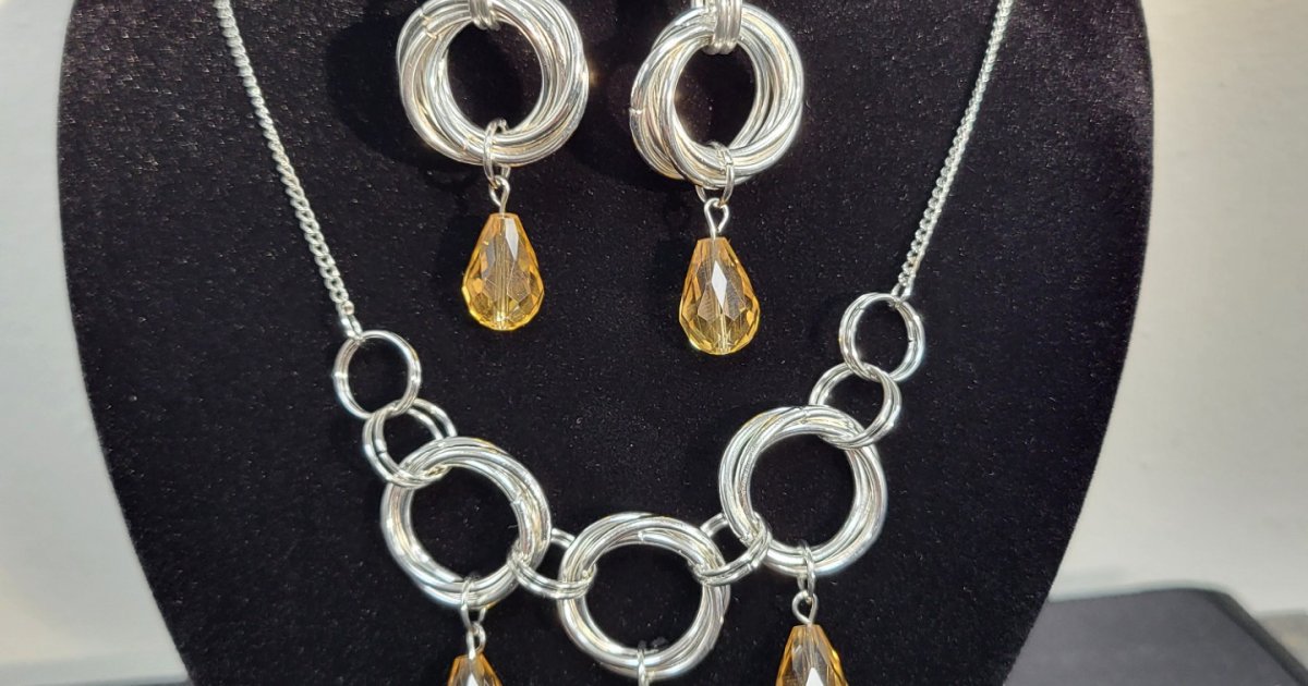 Adults 16+ Come join us in creating a chainmail necklace and earrings. This project uses jump rings formed into mobius units. No previous knowledge is required. You will also be learning how to use jewelry pliers, which do take some manual dexterity. A choice of beads is available for this project.