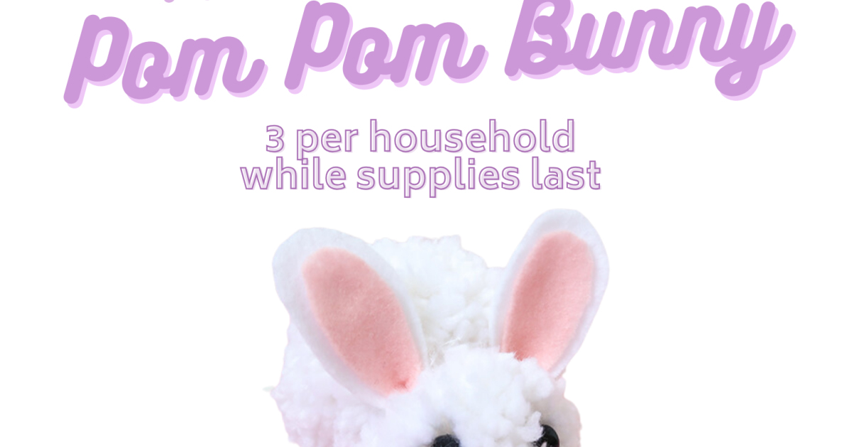 Create your own cute bunny friend for spring with this take-home kit! While supplies last.