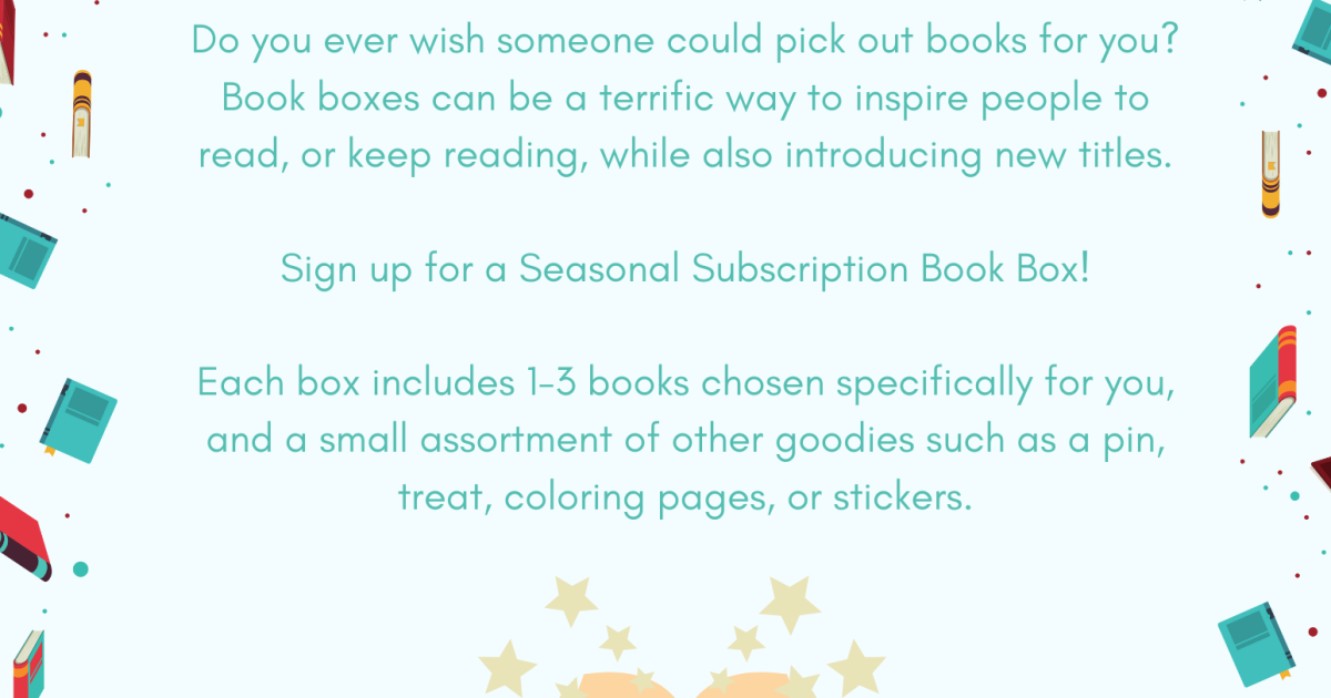 Have you heard of those subscription boxes where you pay to receive a personalized box of goodies every month? Well, this is just like that, except for free! And with library books! Sign up now for a Summer Junior Subscription Box and receive three boxes containing 1-3 library books chosen specifically for you and extra goodies. When you've finished the books and your box, return them -- the rest is yours to keep!